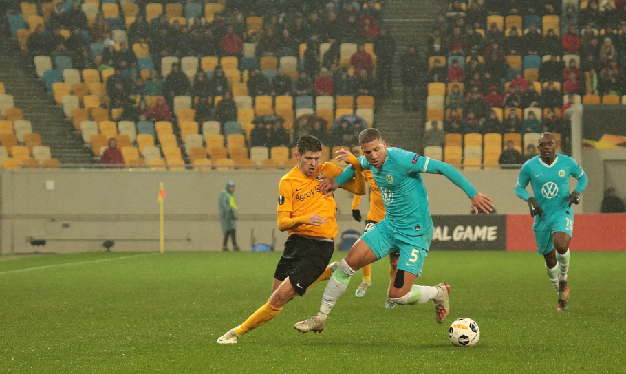 Безбородько пытался протолкнуть мяч мимо Литовки, но вместо этого нарушил правила в атаке.
