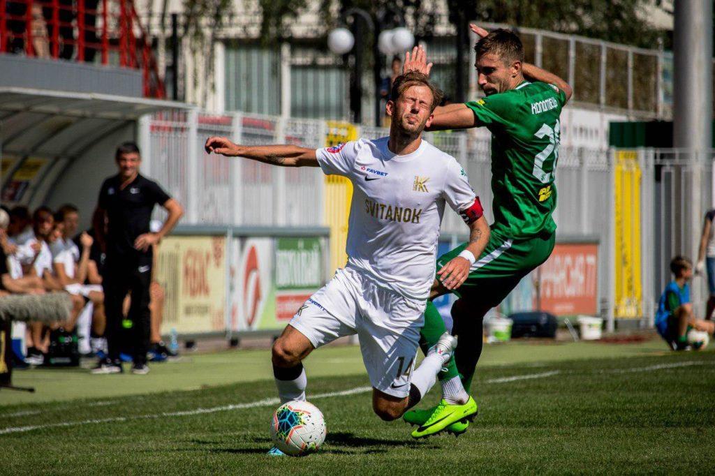 Лысенко получил по ногам около чужой штрафной, что не осталось без внимания арбитра.