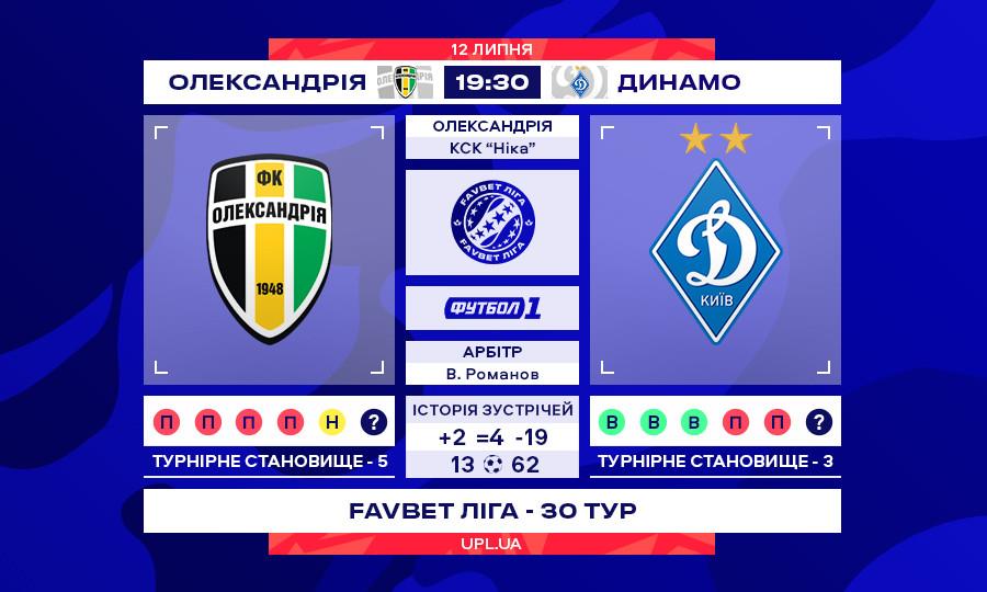 Напомним, в предыдущем очном поединке Динамо разбило Александрию - 5:1.