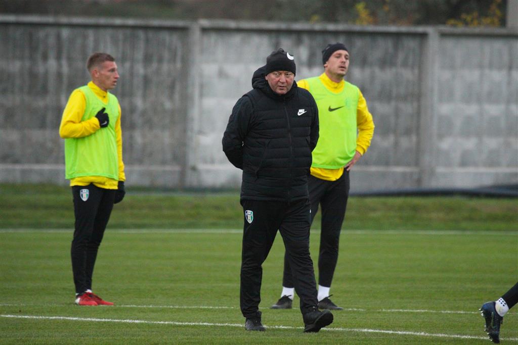 Шаран готовит первую замену. Грицук получает последние указания.