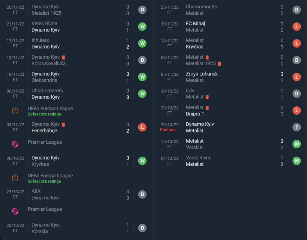 Проте чи все в порядку всередині харківського колективу для того, аби вважати, що він може протистояти явному фавориту? Олега Ратія під час матчів останнім часом помітно витісняє з технічної зони спортивний директор клубу Василь Кобін, і тому не є очевидним, команда якого саме з керманичів наразі показує настільки невтішні результати. Останні матчі за участі харків’ян виявились доволі жадібними що стосується забитих м’ячів, тому Динамо варто цього остерігатись, бо останні втрати очок з їхнього боку відбувались саме на тлі відсутності забитих м’ячів.