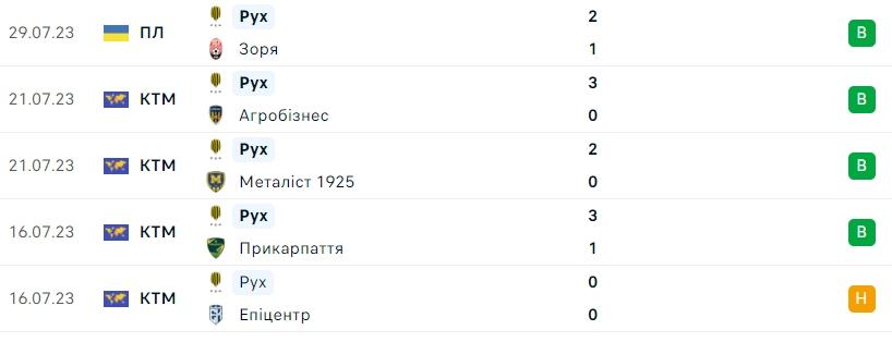 Безпрограшна клубна рекордна домашня серія Руху триває 7 ігор: 3 перемоги та 4 нічиї.