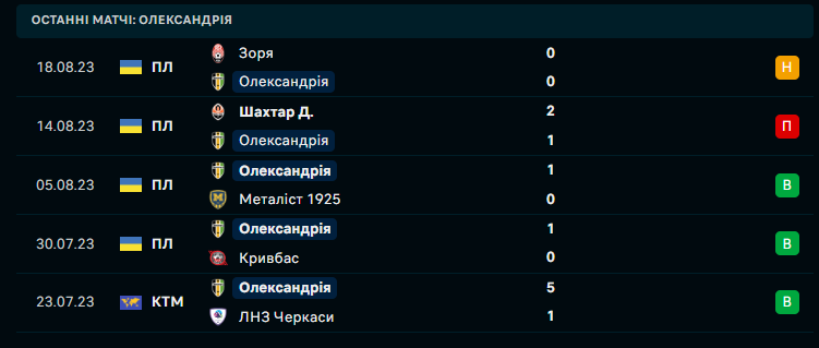 останні матчі
