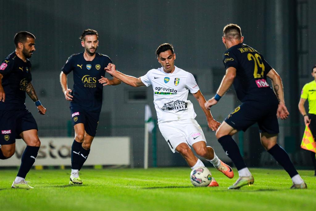 Тримає м'яч на власній половині Полісся під пресингом.