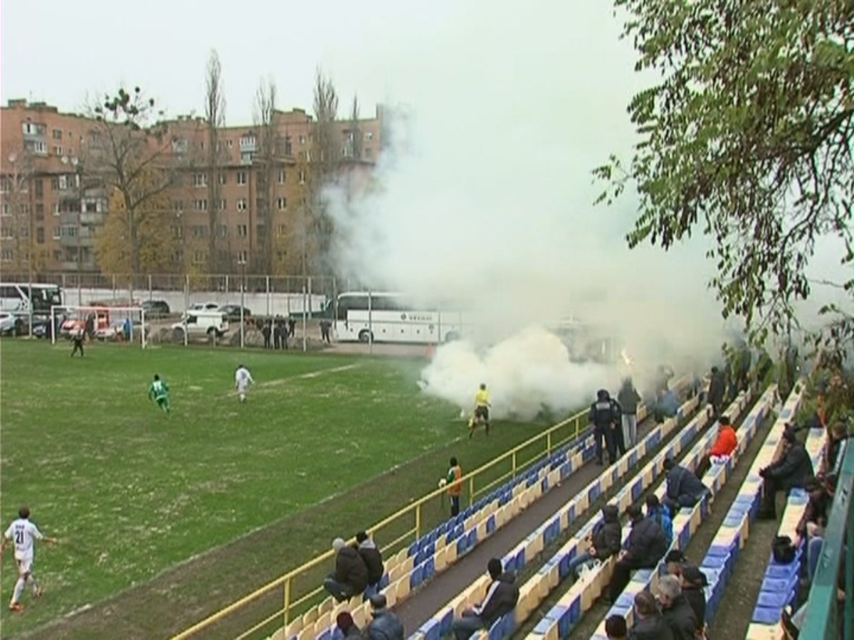 Во втором тайме, при счете 0:1, когда Полтава что есть сил пыталась отыграться после гола гостей на 25 минуте, в фанатском секторе были зажжены несколько образцов пиротехники. Когда густой дым застелил половину поля, фаеры полетели на траву (на стадионе Локомотив нет беговых дорожек, и зрительские места почти вплотную примыкают к газону). Арбитр матча Михаил Митровский вынужден был остановить поединок на несколько минут, после чего, когда дым рассеялся, возобновил матч назначением спорного мяча. К основному времени поединка рефери компенсировал целых восемь минут.