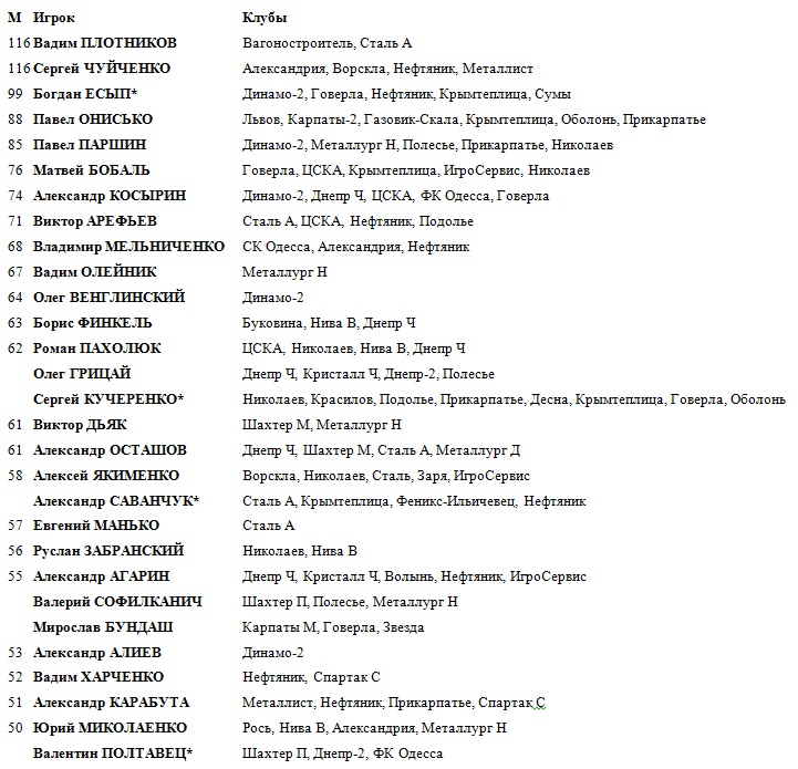 Дальше вашему вниманию предлагается таблица самых результативных игроков в истории первой лиги, подготовленная Юрием Назаркевичем.