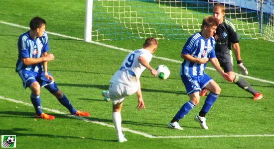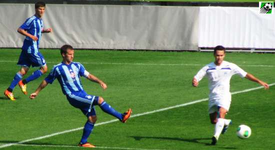 акой игре лучший бомбардир юниорской команды прошлого сезона мог рассчитывать только на себя, и он несколько раз выгрызал мяч, правда, так и не сумев выйти из-под николаевской опеки. Пожалуй, единственный в первом тайме острый фланговый проход динамовцев записал на свой актив центрхав Алиев. Правда, его прострел своевременно заблокировал Булычев, переведя мяч на угловой.