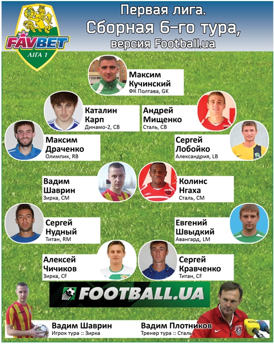Football.ua называет символическую сборную 6-го тура Favbet-Лиги 1 сезона 2013/2014.