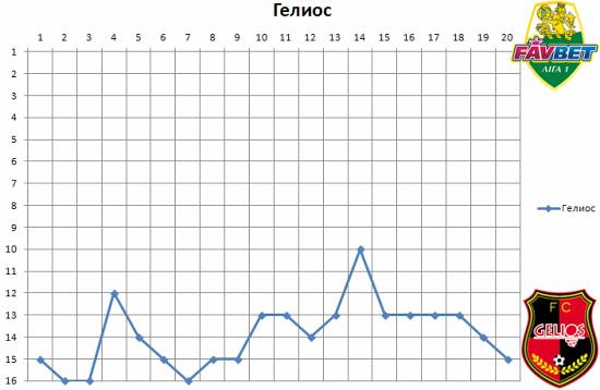 И снова нестабильная команда пережила «смену полос». В Киеве в перенесенном матче с Динамо-2 Гелиос совершенно неожиданно и совершенно по делу «влетел» аутсайдерам. Молодые киевляне, до того никак не умевшие зацепиться за результат, разбили харьковчан со счетом 3:0. А в следующем матче, принимая Сумы, харьковчане не реализовали сразу два пенальти – оба отразил голкипер гостей Белошапка. И лишь на последних минутах эрзац-форвард Кравченко выручил хозяев от поражения – только ничья. Остаток сезона Гелиос доигрывал все так же постно – домашние нулевки с Буковиной и Александрией, минимальное поражение в Чернигове и неоднозначный матч в Алчевске, где Сталь раскачивалась больше часа, но с выходом Акименко разобрала «красно-черных». А уже после завершения основной части осеннего этапа Динамо-2 еще раз «боднуло» харьковчан – теперь заочно, уступив в Николаеве. Именно из-за этого «корабелы» на последнем повороте сбросили Гелиос в зону вылета – на 15 место.