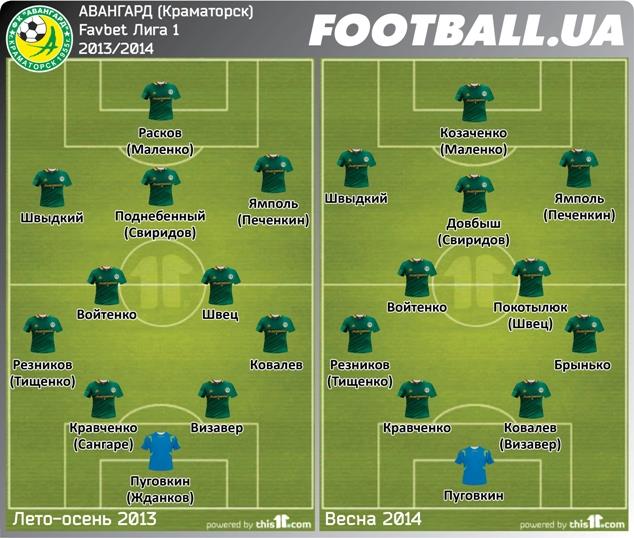 По сравнению с осенней частью сезона, Авангард изменился лишь точечно. Вратари остались прежние: Пуговкин и готовый подстраховать его Жданков. Четверка защитников вырисовывалась все та же (справа – налево): Ковалев, Визавер, Кравченко, Резников. Слева готов был выйти Тищенко, а на обоих флангах мог сыграть возвратившийся Брынько. Позже, когда команду покинули травмированный Киселевский и уехавший на родину Визавер, оборона краматорчан осталась практически безальтернативной, а в центр вынужден был сместиться Ковалев.
