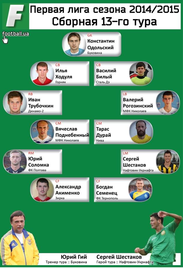 Football.ua называет символическую сборную очередного тура первой лиги сезона 2014/2015.