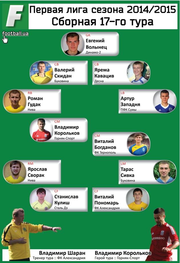 Football.ua называет символическую сборную очередного тура первой лиги сезона 2014/2015.