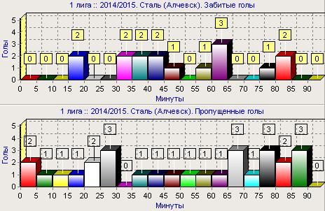 • Худший матч – выездной с Динамо-2 (1:4, 02.08.2014, 2 тур). А уже в следующем туре алчевцы потерпели крах в Киеве, получив от самой молодой команды лиги сразу четыре мяча. Хотя Сталь считается классиком контратакующей игры, соперники ее перебегали и переиграли.