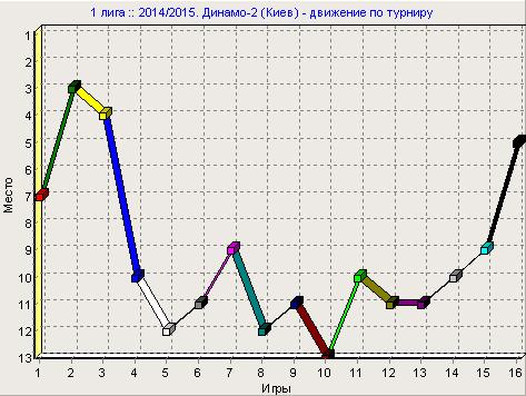 Важнейшим для турнирного шествия Динамо-2 стал домашний матч с Гелиосом. Гости прибыли из Харькова, занимая третье место, но хозяева разгромили их благодаря красивым голам Яремчука, Цыбульника, Гемеги и Хлебаса. Затем дома были обыграны Сумы, Нива и Николаев, а еще команда значительно увереннее заиграла в гостях. Сперва динамовцы сумели довольно неплохо выступить в Кривом Рогу, где имели очень реальные шансы забить Горняку, но все же сыграли вничью. А в последнем туре осени они обыграли в Карловке алчевскую Сталь благодаря голу Хлебаса. Таким образом, киевские резервисты, которые почти всё время шли в середине турнирной таблицы, после заключительного игрового дня 2014 года взобрались на пятое место. Так высоко они не бывали никогда еще в этом сезоне.