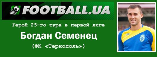 Голов в этом туре было немного, однако при этом какие это были голы! Не будем трогать николаевские курьезы – вспомним, как забивали Исраилов и Картушов в Киеве. В любом другом туре они претендовали бы на звание лучших. Но на этот раз, посоветовавшись с коллегами, выбираем во многом спонтанный, но зато решающий точный удар Семенца. Цитируем отчет: «Рядовая длинная передача, тернополяне выигрывают верховую борьбу. После скидки мяч попадает к Семенцу, который принимает его, разворачивается и лупит метров с 25-ти». Что привлекает в этом голе? Посмотрите, как действует игрок после скидки – прием, разворот, разящий удар, который становится полным сюрпризом для вратаря. За смелость и неординарность решения делегируем звание лучшего именно Богдану.