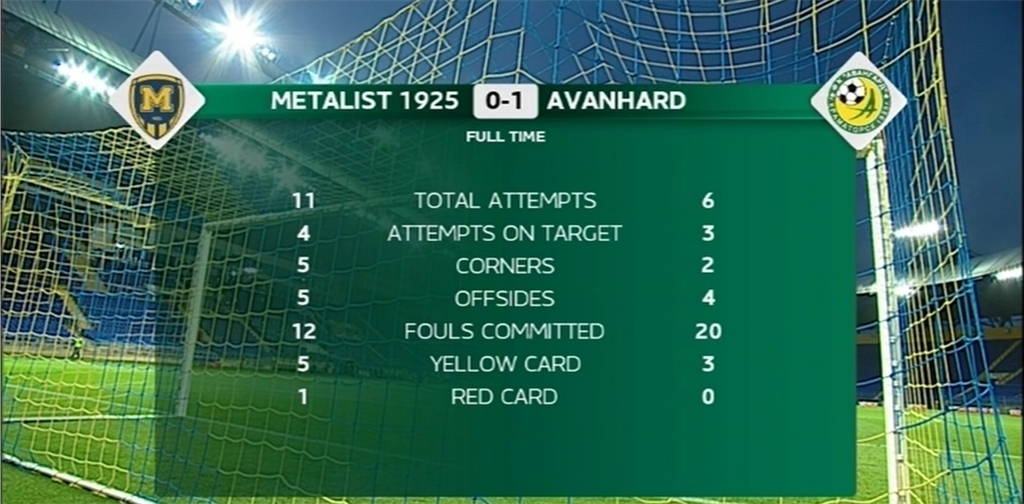 Авангард: Денчук, Воробей (Брюхов, 71), Дм.Сидоренко, Мирошник, Сухаров, Сеницкий (Долинский, 90+2), Полулях, Лобов (Цыбульник, 85), Матяж (Мурза, 89), Нехтий, Кириенко (Собко, 76).