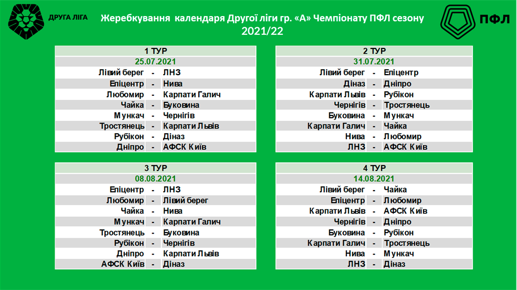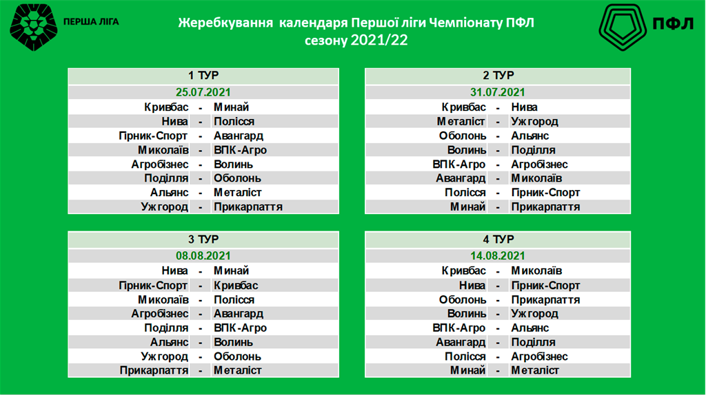 Вашему вниманию календари первых четырех туров в Первой и Второй лигах Украины.