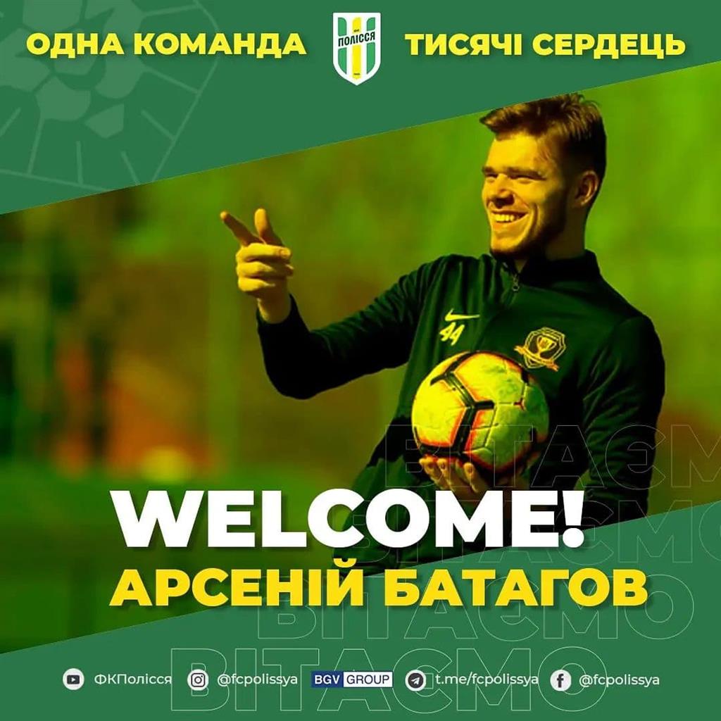 Житомирское Полесье на своем официальном сайте объявило об аренде полузащитника Днепра-1 Арсения Батагова.