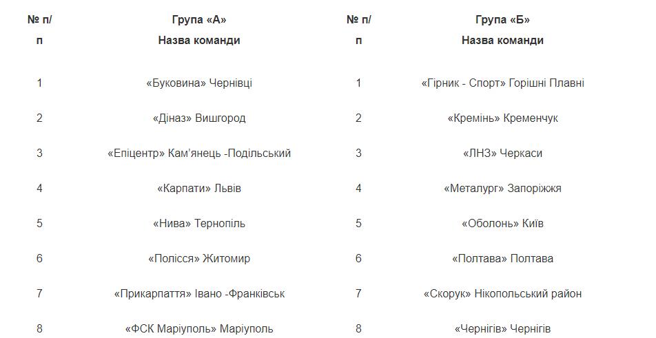 Після консультації зі всіма клубами прийнято рішення затвердити склад учасників чемпіонату України з футболу серед команд Першої ліги (2 групи – група А та група Б) по територіальному принципу.