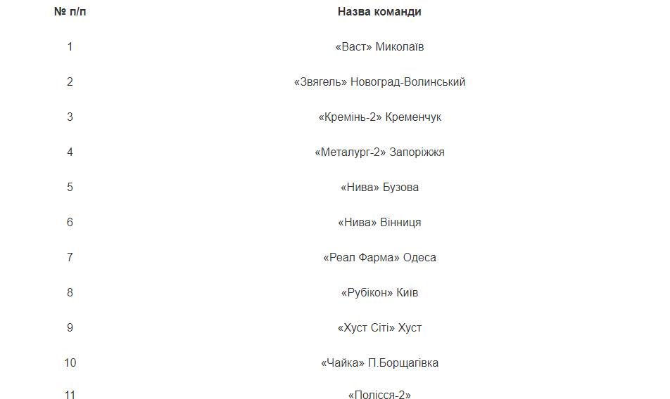 Новачками змагань під егідою ПФЛ стануть Васт (Миколаїв), Нива Бузова (Київська область), Хуст Сіті (Закарпатська область) та Звягель (Новоград-Волинський, Житомирська область).