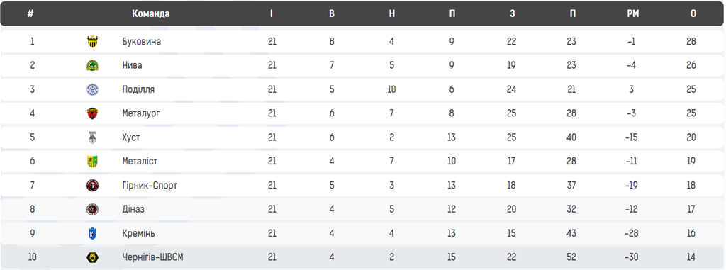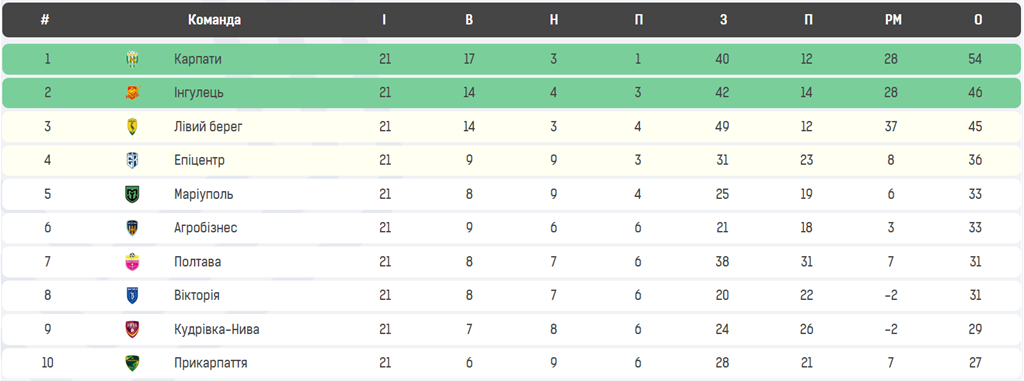 Турнірна таблиця