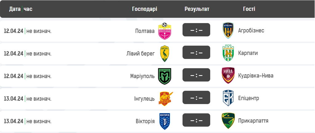 Розклад наступного туру