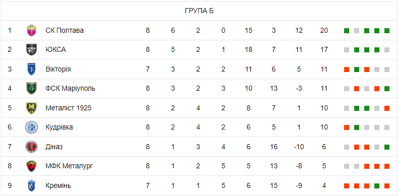 Турнірна таблиця групи Б Першої ліги після дев'ятого туру: