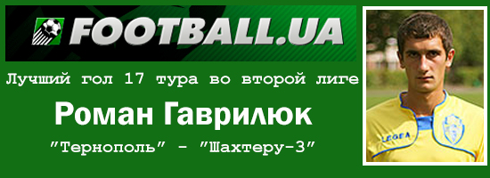 Впервые в сезоне у нас игрок побеждает сразу в двух главных номинациях. Признаться, в этом туре впечатлили и херсонец Манасян, оформивший хет-трик, и днепродзержинец Днистрян, особо ярко отыгравший против своей бывшей команды – Скалы, и черкассец Дацюк с макеевчанином Шевчуком, также оказавшиеся причастными к обоим голам родных клубов. Но отметим именно Романа Гаврилюка – слишком уж ярко сыграл он против дончан, да и мастерство исполнения поразило. Оба гола своей команды в ворота дончан он обил красивыми прицельными ударами по девяткам, причем, продемонстрировал при этом и отличное владение мячом, и удар с обеих ног, и технику. А важная победа, одержанная его командой над одной из команд из группы лидеров, позволила тернополянам сохранить комфортную позицию в борьбе за самое высокое место.
