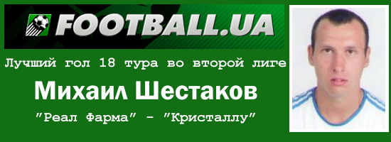 Это был хороший тур как в плане результативности, так и в плане обилия красивых голов. Как жаль, что кременчужанин Вовкодав, херсонец Ситало или свердловчанин Тарануха забили свои голы-красавцы именно сейчас, а не в менее «богатые» туры!.. На этот же раз у них не было шансов, потому что редкий для второй лиги мяч удалось забить Михаилу Шестакову. Игрок ФК Реал Фарма забил ударом через себя в падении: после вбрасывания с аута сделал шаг вперед, положил корпус и неотразимо пробил. Такой гол украсил бы и тур премьер-лиги, что уж говорить о втором дивизионе!