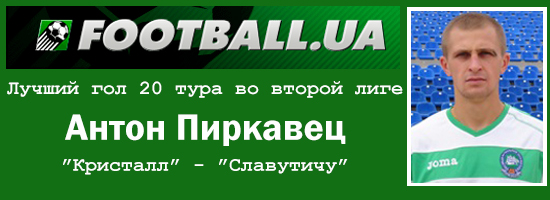 Опять-таки, тур предоставил нам приличный выбор, но на этот раз лучшим признаем гол с налетом курьезности. Цитируем отчет тура, раздел о матче Кристалл – Славутич: «После навеса Манасяна с правого фланга Дяченко сбросил мяч в центр штрафной ударом головой, а голкипер сыграл на выходе, выбив мяч за пределы своих владений. На подборе никого из черкассцев не оказалось, зато к мячу успел Пиркавец. Удар центрхава получился на славу – он перебросил покинувшего ворота кипера, и карауливший на линии защитник также ничем не смог помочь своей команде». Итак, лучший гол 20 тура забивает Антон Пиркавец из херсонского Кристалла.