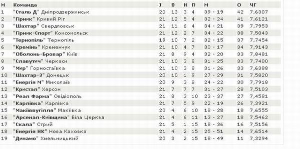 Использована таблица сайта Профессиональной футбольной лиги Украины