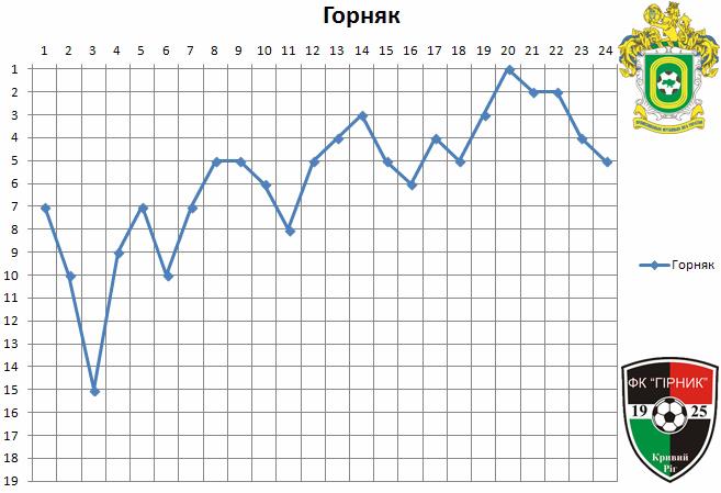 Впрочем, у команды Приходько есть два козыря, которые значительно срезают острые углы. Во-первых, как мы уже говорили, основу Горняка составляют местные футболисты 18-25 лет, воспитанники криворожского футбола и в частности Кривбасса. Во-вторых, команда выступала достаточно неплохо, в нескольких турах взбиралась на первое место и заслужила уважение хотя бы за свою игру и результаты. На зимний перерыв Горняк ушел на пятом месте, отставая от зоны первой лиги всего на одно очко. Позиция эта вполне удобная, чтобы весной продолжить гонку за первой четверкой. А мы вспомним, каким было это полугодие для криворожан.
