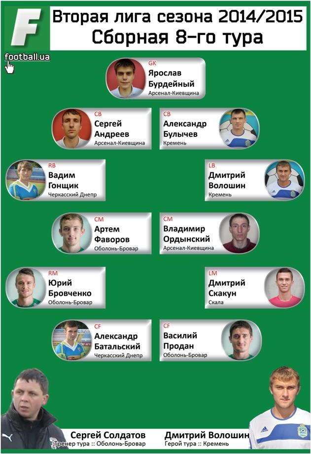 Football.ua называет символическую сборную очередного тура второй лиги сезона 2014/2015.