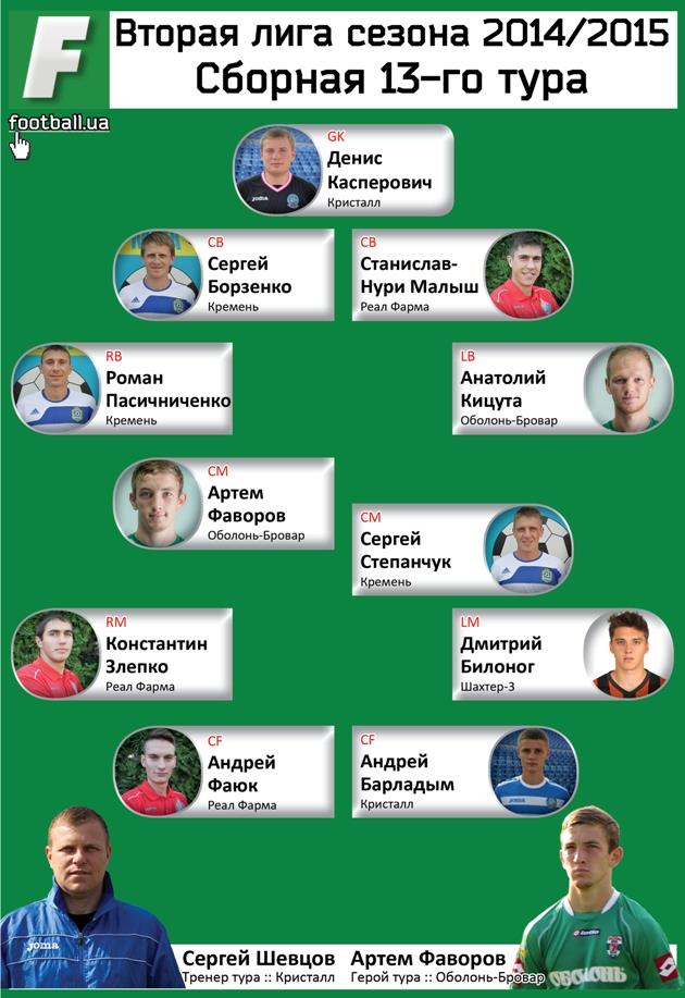Football.ua называет символическую сборную очередного тура второй лиги сезона 2014/2015.