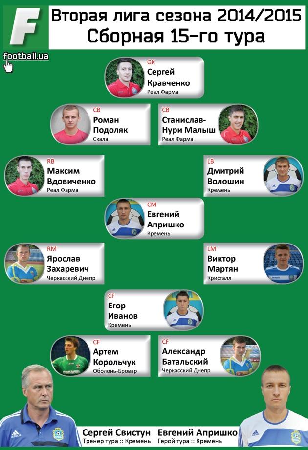 Football.ua называет символическую сборную очередного тура второй лиги сезона 2014/2015.