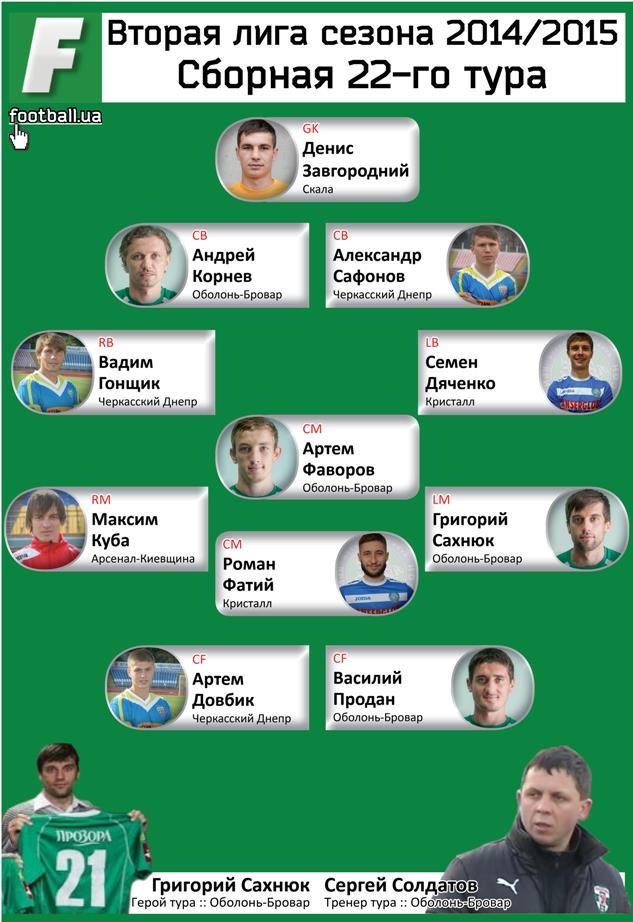 Football.ua называет символическую сборную очередного тура второй лиги сезона 2014/2015.