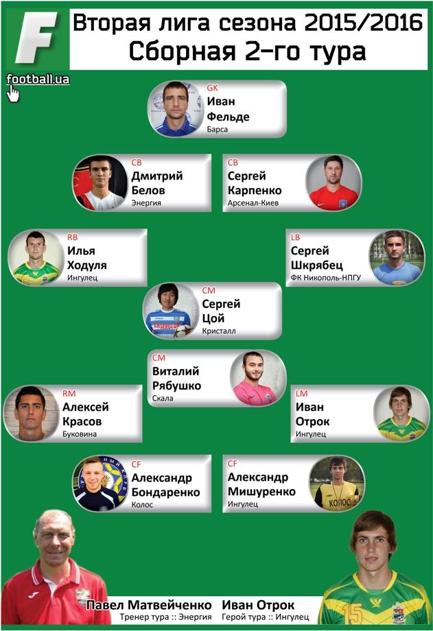 Football.ua называет символическую сборную очередного тура второй лиги сезона 2015/2016.