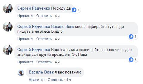 Василий Вовк пообщался в Facebook с болельщиками винницкой Нивы.
