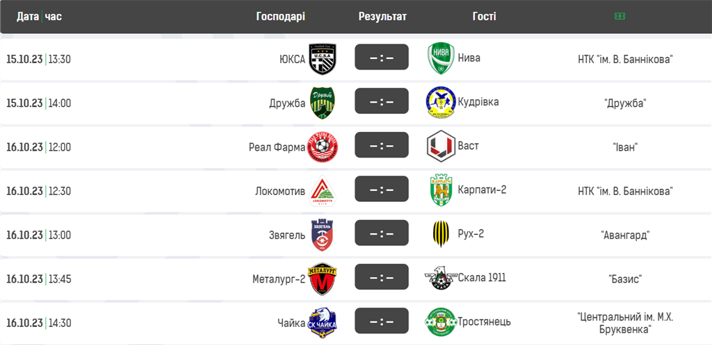 Розклад наступного, тринадцятого туру української Другої ліги: