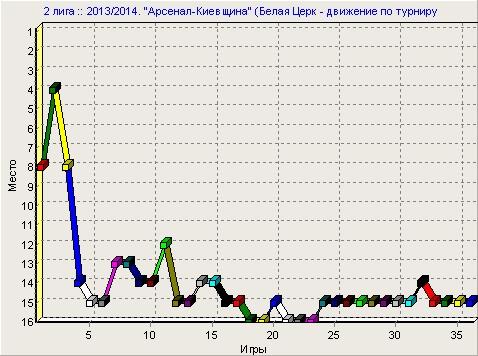 с начала осени и до конца чемпионата белоцерковцы не поднимались выше 14 места;