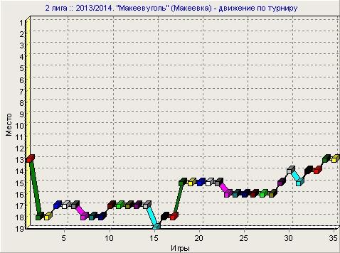 • Лучший матч – домашний с Тернополем (1:0, 01.06.2013, 37 тур). Хороших матчей у макеевчан было немало: это и домашняя победа над Шахтером-3, и разгром, учиненный Арсеналу-Киевщине, и волевой выигрыш у Горняка (тогда криворожане еще сетовали на судейство). Но лучшим назовем все-таки условно-домашний матч с «муниципалами», сыгранный на нейтральном поле в Днепропетровске. Соперник был предельно мотивирован, но пропустил мяч в свои ворота уже в дебюте (макеевчане вынудили ошибиться Атласюка). И даже пенальти не помог тернополянам отыграться – великолепно отыгравший Мельниченко отбил его, и это поражение поставило под сомнение бронзовые медали команды Ивегеша.