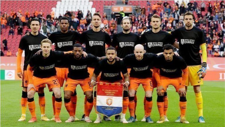 Нечто подобное провернули и в сборной Нидерландов. У голландских игроков перед матчем с Латвией на футболках была надпись "Football Supports Change", что можно перевести, как "Футбол поддерживает перемены". Конечно, эта надпись тоже была направлена на поддержку рабочих мигрантов в Катаре.