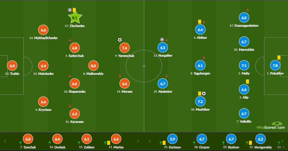 Стали известны оценки игроков матча квалификации ЧМ-2022 между Украиной и Казахстаном по версии WhoScored.