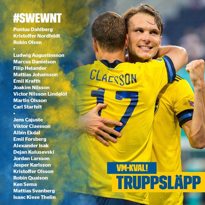 Сборная Швеции объявила заявку своей национальной команды на предстоящие отборочные поединки чемпионата мира 2022 года, которые пройдут в сентябре. Об этом сообщает пресс-служба шведского футбольного союза.