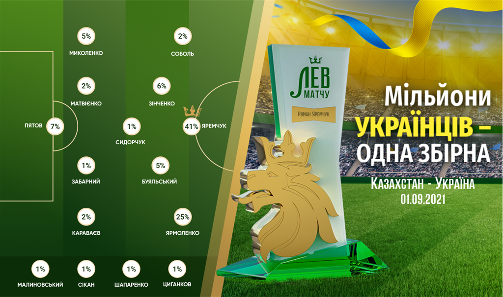 По итогам голосования, при поддержке спонсора сборной Украины ТМ Львівське, приз "Лев матчу" в игре против Казахстана получил Роман Яремчук, который забил первый гол нашей команды.