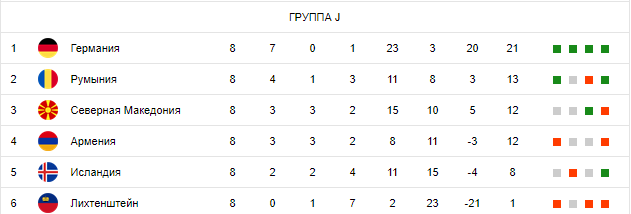 Победителя данного противостояния определил единственный гол Митрицэ, который принес в актив румынской сборной три пункта в актив. Поскольку Германия уже вышла на мундиаль, гарантировав себе первое место, основная борьбе в квартете J пройдет за вторую строчку и попадание в стыковые турниры.