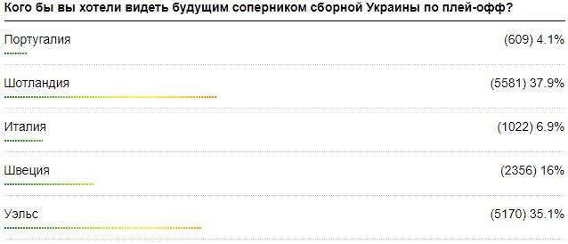 Предлагаем вашему вниманию результаты опроса на тему возможных соперников для сборной Украины.