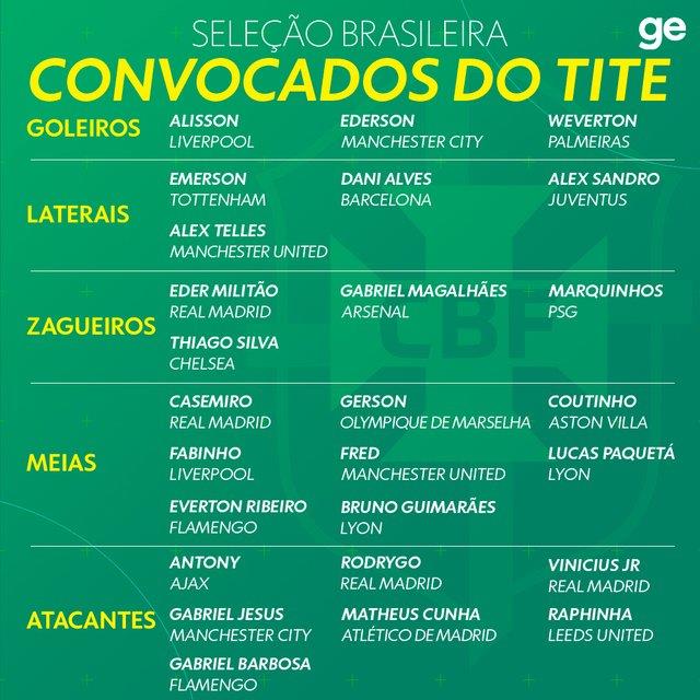 Тренерский штаб сборной Бразилии во главе с Тите определился со списком футболистов на очередные матчи отборочного цикла ЧМ-2022. Об этом сообщает пресс-служба бразильской конфедерации футбола.