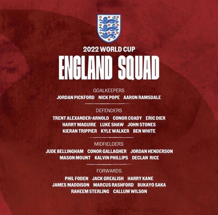 Збірна Англії опублікувала заявку на чемпіонат світу-2022.