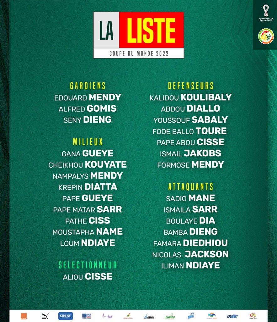 До списку потрапив лідер національної команди Садіо Мане з Баварії, який напередодні отримав травму у матчі німецької Бундесліги проти Вердера.